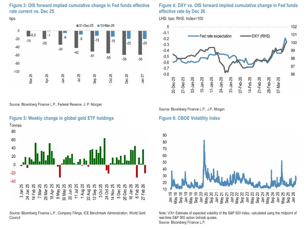 然而,该行认为最主要的推手是股市波动加剧引发的广泛去风险化——当VIX指数高企并持续攀升时,投资者在保证金追缴、组合再平衡和VaR冲击的叠加压力下被迫全面筹措流动性,黄金持仓首当其冲遭到抛售,全球黄金ETF持仓上周随之出现明显流出。